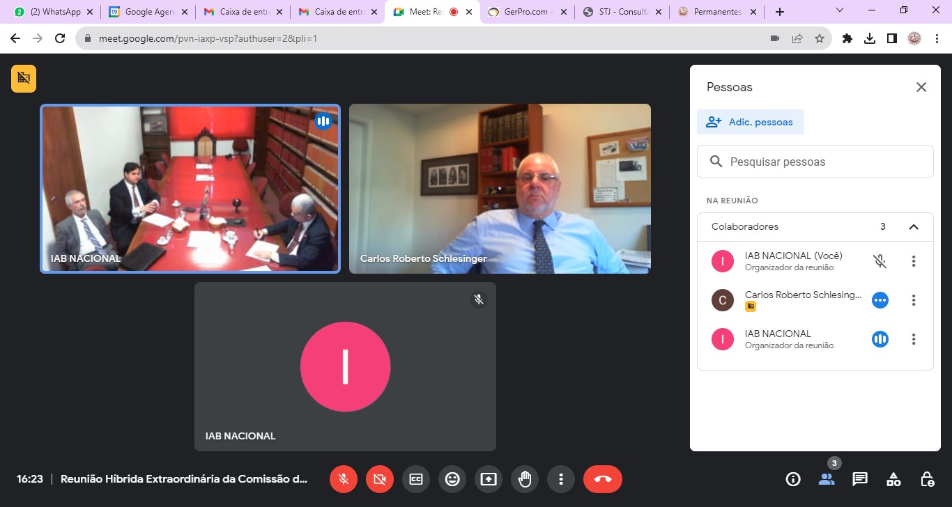 A Comissão de Direito e Liberdade Religiosa-IAB/Nacional, reunida hibridamente, em 19.09.2023, 3ª feira, às 16h15, à partir da Biblioteca do IAB/Nacional, na Av. Marechal Câmara, 210, 2º Andar, Centro, Rio/RJ, concomitantemente, através da Plataforma ‘Google Meet’, disponibilizada pelo Setor de Tecnologia do IAB, sob a Presidência do Dr. Gilberto Garcia, com a Presença do Dr. Leonardo Iorio, e, do Dr. Paulo Maltz, e contando com a Participação Eletrônica dos Membros: Dr. Carlos Schlesinger (1º Vice-Presidente), Além da Manifestação Anotada, por E-mail, dos Membros: Dra. Laura Berquó, e, Dr. Vitor Pereira, Foi Apreciado o Único Item da Pauta, pelos Membros Presentes na Reunião Extraordinária: 005/2023, Híbrida, (Presencial e On-Line), deste dia: