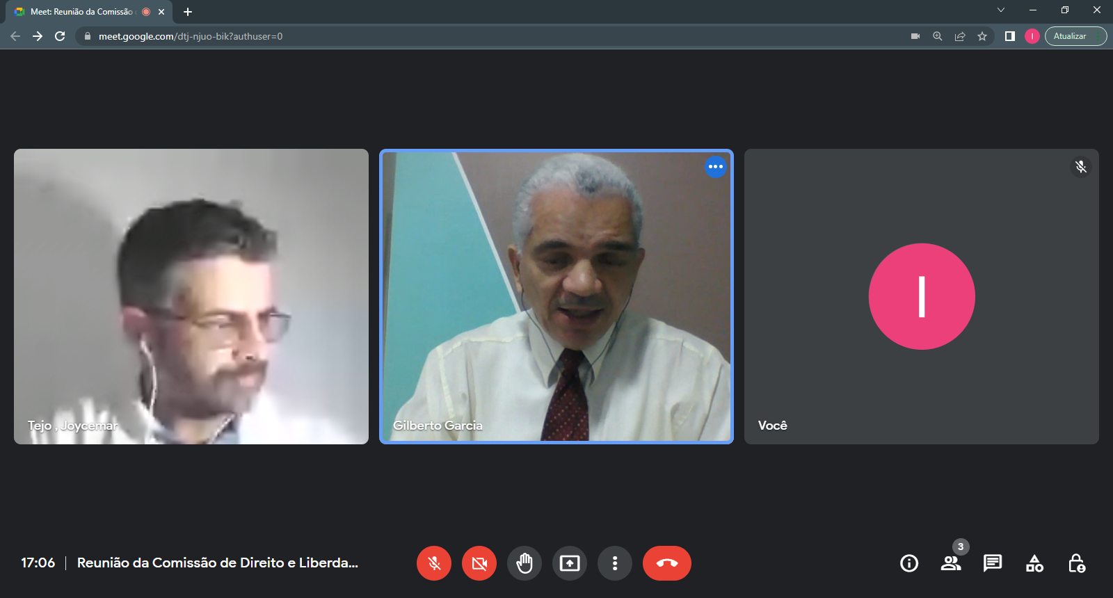 A Comissão de Direito e Liberdade Religiosa do IAB/Nacional, que se reúne bimensalmente, neste tempo, no Modo Virtual, em 30.06.2022, à partir das 16h00, através de Plataforma ‘Google Meet’, instrumentalizada pela Equipe Tecnológica do IAB, sob a presidência do Dr. Gilberto Garcia, contando também com a participação do Dr. Joycemar Tejo, sendo todos Membros devidamente cientificados pelos E-mails Profissionais, bem como, pelo WhatsApp da Comissão; anotando-se as Justificativas de Ausência do Dr. João Theotonio, do Dr. Paulo Maltz, e, do Dr. Leonardo Iório; deliberou, à luz dos itens constantes da Pauta Provisória: