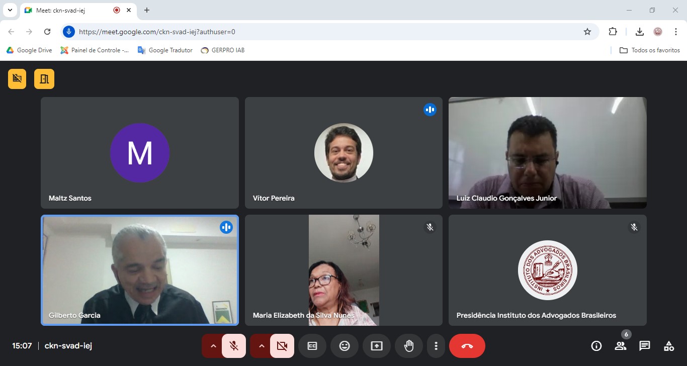 A Comissão de Direito e Liberdade Religiosa-IAB/Nacional reunida virtualmente em 02/10/2024, 4ª Feira, as 15h03, através da Plataforma ‘Google Meet’ disponibilizada pelo Setor de Tecnologia do IAB/Nacional, Av. Marechal Câmara, 210, 5º Andar, Centro, Rio/RJ, sob a Presidência do Dr. Gilberto Garcia, e, Contando com a Participação Eletrônica: Dr. Luiz Claudio Gonçalves Junior (Guaratinguetá/SP), Dr. Vitor Pimentel Pereira, Dra. Maria Elizabeth da Silva Nunes, e, Dr. Paulo Maltz, Anotando-se a Justificativa de Ausência dos Membros: Dr. Carlos Schlesinger (1º Vice-Presidente), Dr. João Theotonio Mendes de Almeida Junior, (2º Vice-Presidente), e, Dr. Leonardo Iorio, tendo sido Apreciado o Item Único da Pauta, pelos Membros Presentes na Reunião: 006/2024, Mensal Virtual, deste dia, no Qual Inclusive Se Celebra o Início do Ano Judaico, pelo que, Auguramos Um ‘Shana Tová’: