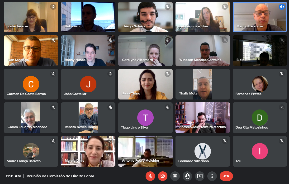 Seguindo a Ordem do Dia, a Comissão Permanente de Direito Penal se instalou por videoconferência às 10h30h, sob a Presidência do Dr. Marcio Barandier, passando a tratar dos seguintes assuntos: