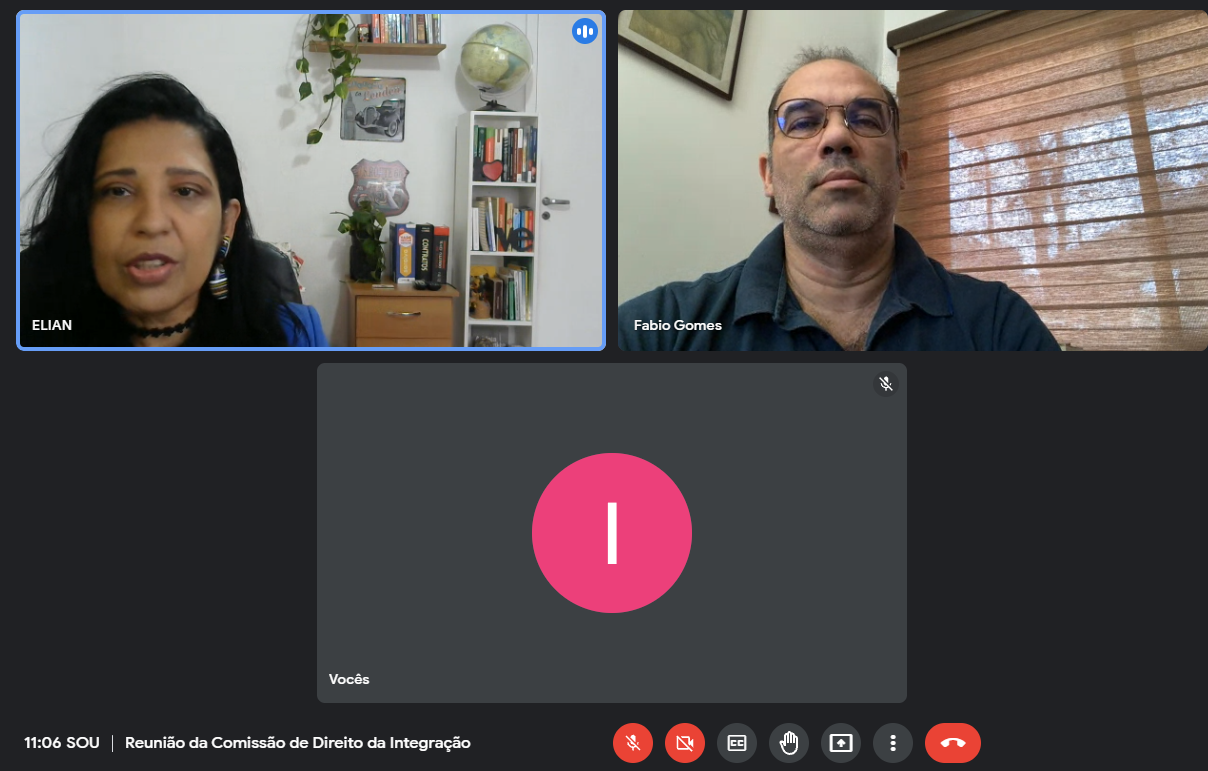 No quarto ponto de pauta, "Diálogos da Comissão de Direito da Integração ", foi dada a palavra ao Dr. Fabio Gomes sobre informes foi da participação de Professores convidados da Universidad de Salamanca, para A Mesa de debates sob sua coordenação de temas da Integração : Cooperação no Espaço Judiciário Europeu e Agenda 2030 da ONU com agendamento previsto entre o mês de novembro e dezembro. O grupo acordou em propor temas para este evento. A Dra. Elian propôs Debate sobre temas como Corte Interamericana de Direitos, Mercosul social , Integração Latino Americana. Será pensada data para o evento para agenda 2022.