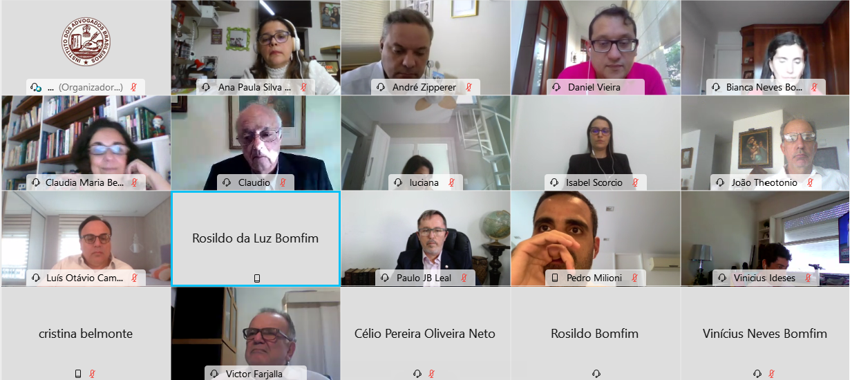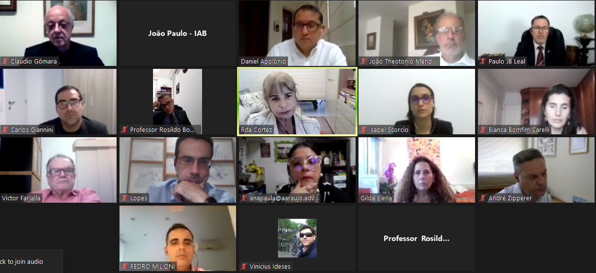 No primeiro encontro, em 17/11, houve a discussão dos pareceres dos doutores Rosildo da Luz Bonfim e Bianca Neves Bomfim Carelli, bem como Luciana Slosbergas e André Zipperer, sobre o tema. A pedido da Ilustríssima Presidente do IAB, optou-se por avaliar também o teor dos demais Projetos de Lei que tratam do tema. Houve nova discussão sobre os pareceres.