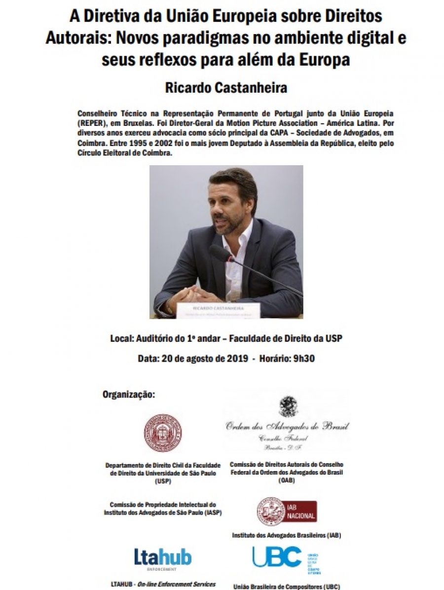 dia 20 de agosto de 2019, às 09h30 - Local -Auditório do 1º andar da Faculdade de direito da USP.