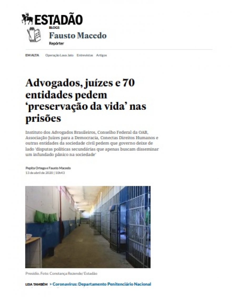 Advogados, juízes e 70 entidades pedem ‘preservação da vida’ nas prisões