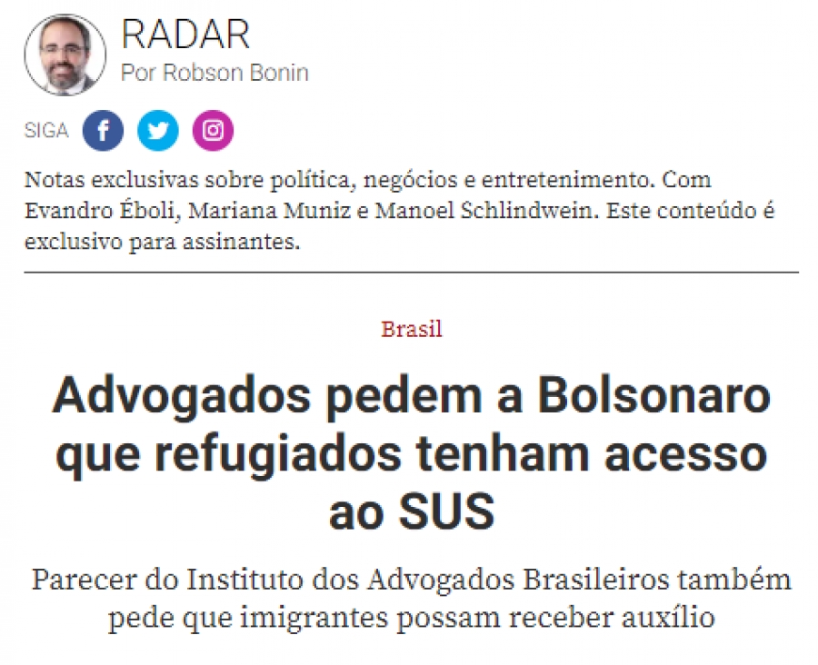 https://veja.abril.com.br/blog/radar/advogados-pedem-a-bolsonaro-que-refugiados-tenham-acesso-ao-sus/