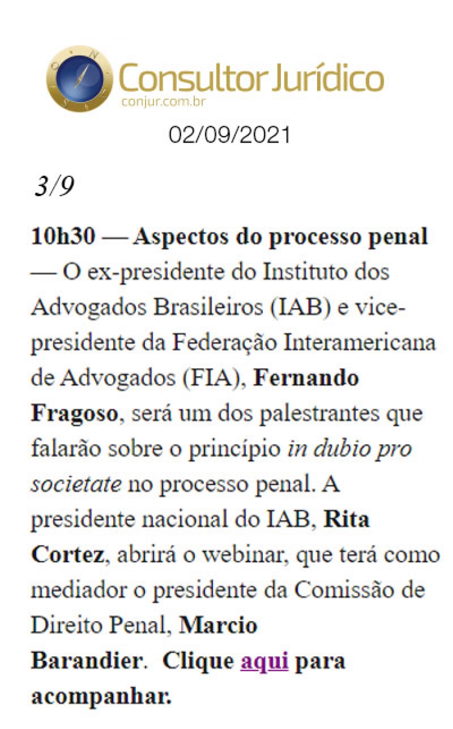 FONTE: Consultor Jurídico - 02/09/2021