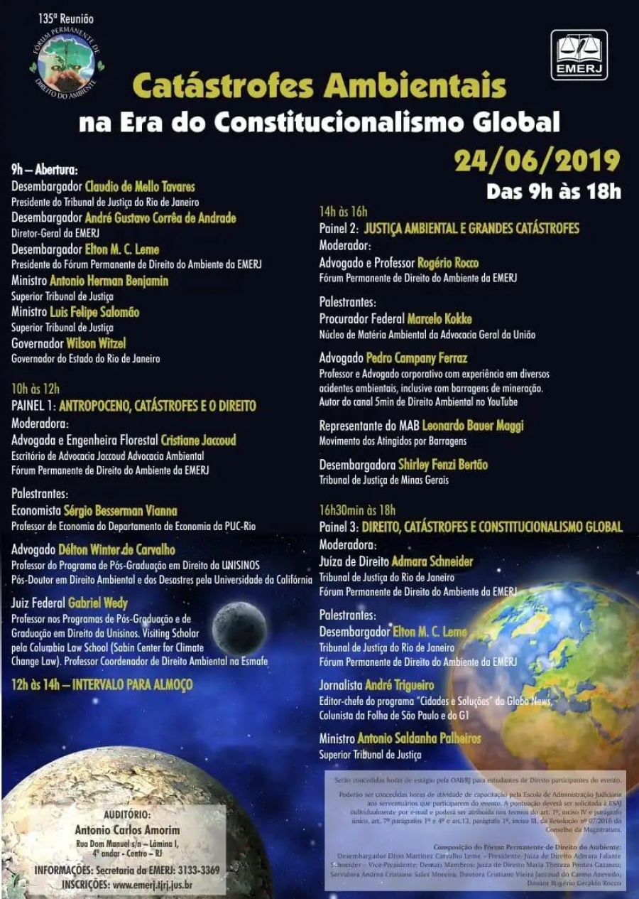 Dia 24 de junho de 2019 das 9h às 18h - LOCAL: Auditório Antonio Carlos Amorim - Rua Dom Manuel s/nº - Lâmina I, 4º andar - Centro - Rio de janeiro - RJ.