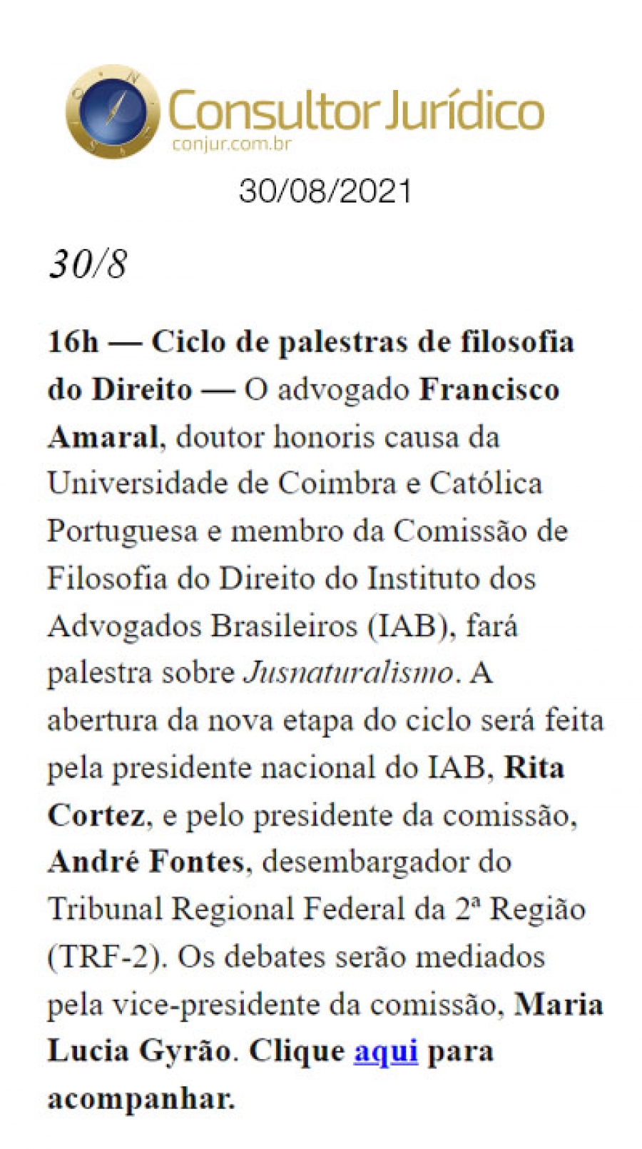 FONTE: Consultor Jurídico - 30/08/2021