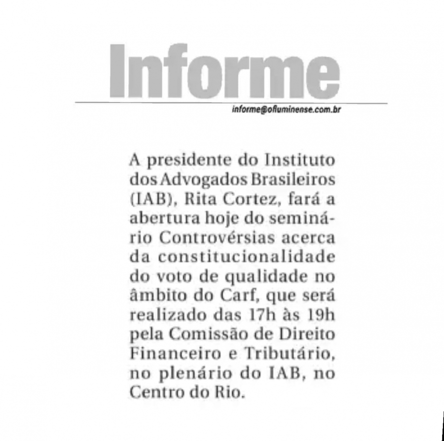 FONTE: Coluna Informe - O Fluminense - 7/8/2018
