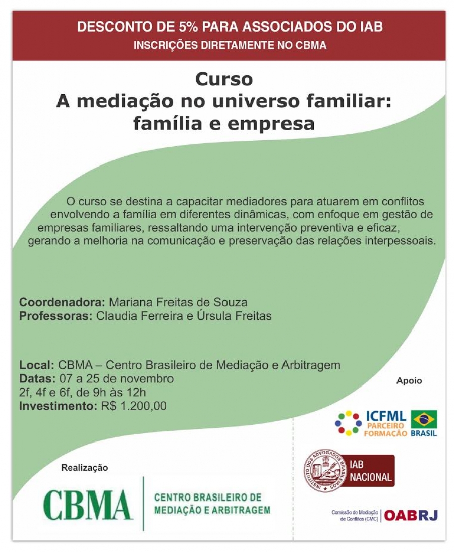 Curso A mediação no universo familiar: família e empresa.
