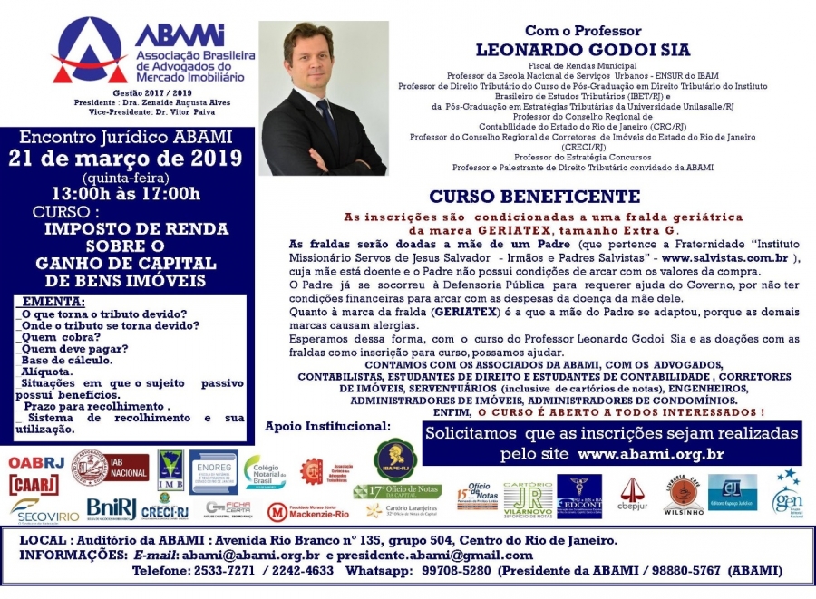 Dia, 21 de março de 2019 das 13hs às 17hs - LOCAL: AV: Rio Branco nº 135 - grupo 504 - Centro- Rio de Janeiro - RJ