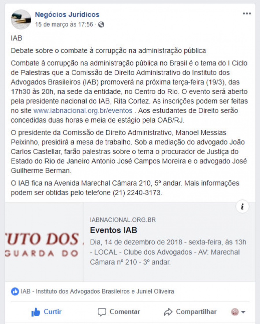 OS MEMBROS DO IAB ATUAM EM DEFESA DO ESTADO DEMOCRÁTICO DE DIREITO. FILIE-SE!