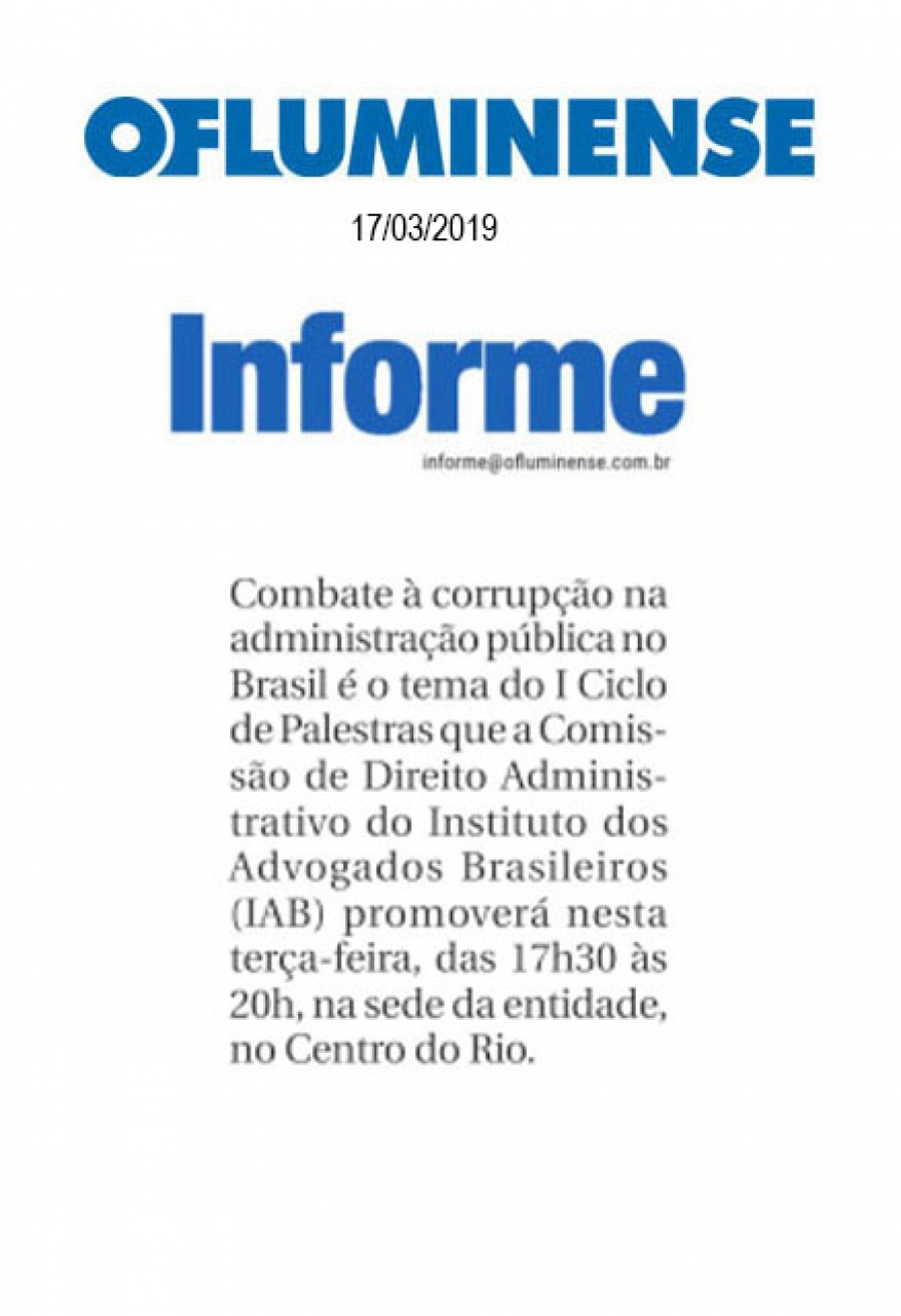 FONTE: Coluna Informe - O Fluminense - 17/3/2019