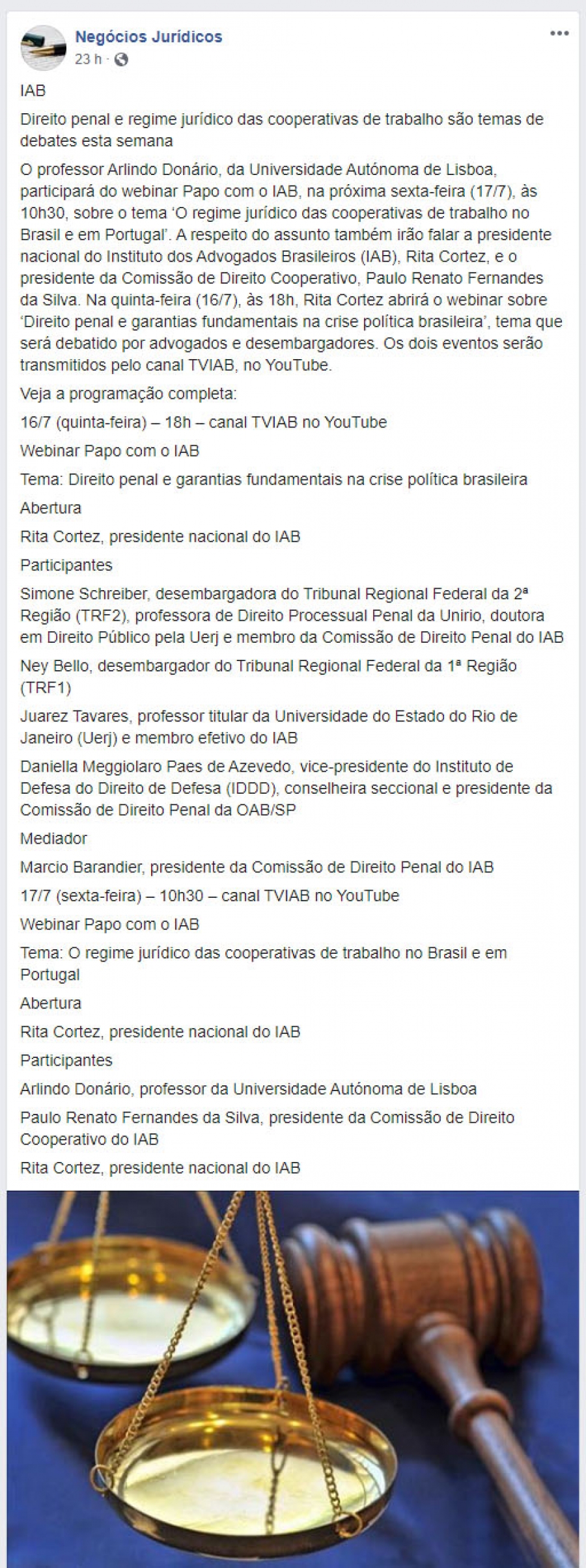 OS MEMBROS DO IAB ATUAM EM DEFESA DO ESTADO DEMOCRÁTICO DE DIREITO. FILIE-SE!