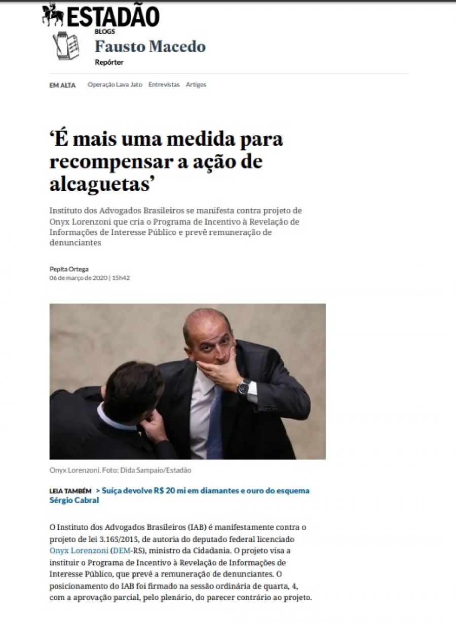 FONTE: O Estado de S. Paulo - 06/03/2020