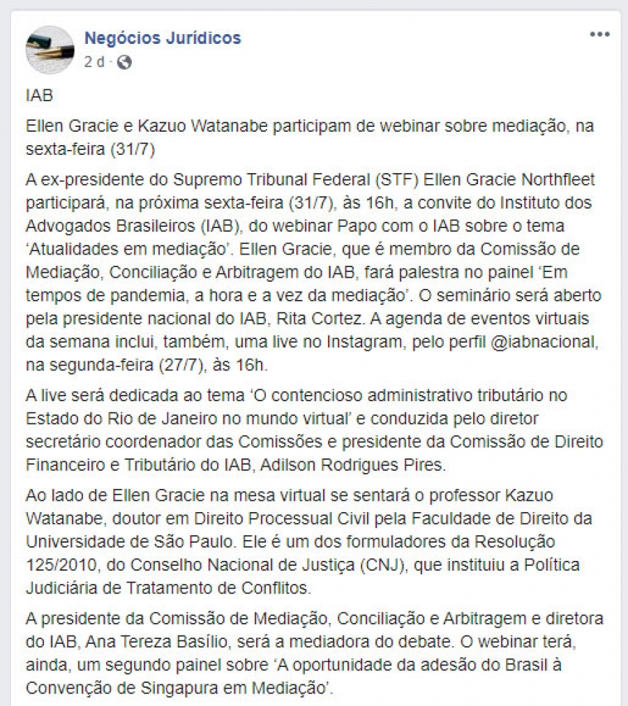 Ellen Gracie e Kazuo Watanabe participam de webinar sobre mediação, na sexta-feira (31/7)