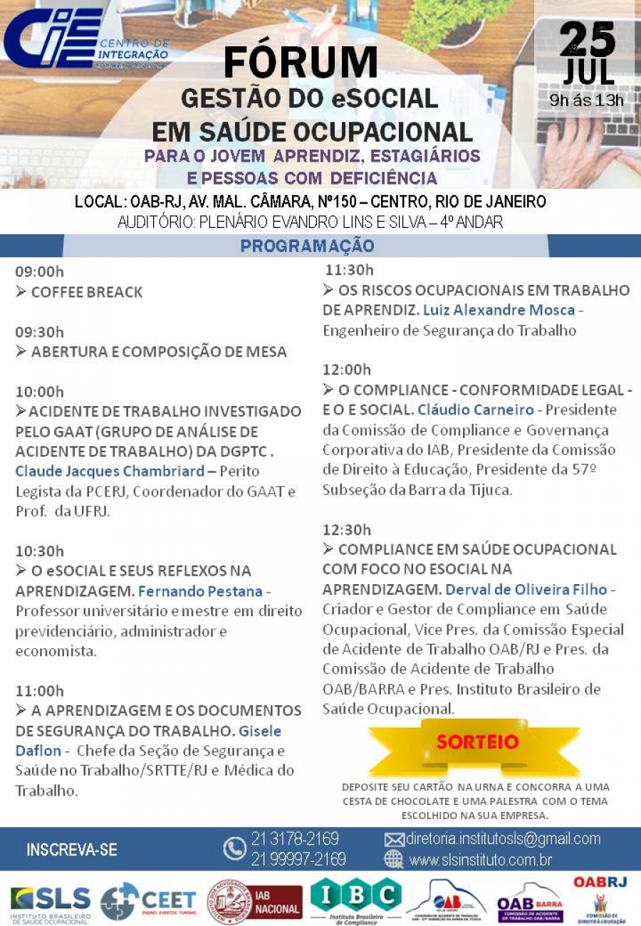 Dia 25/07/2018 -9h às 13h - Local: OAB-RJ, Plenário Evandro Lins e Silva