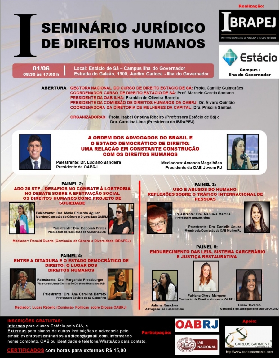 Dia 01 de junho de 2019, das 8h30 às 17h - Local: Estácio de Sá - Campus Ilha do Governador - Estrada do Galeão nº 1900 - Jardim Carioca - Ilha do Governador.