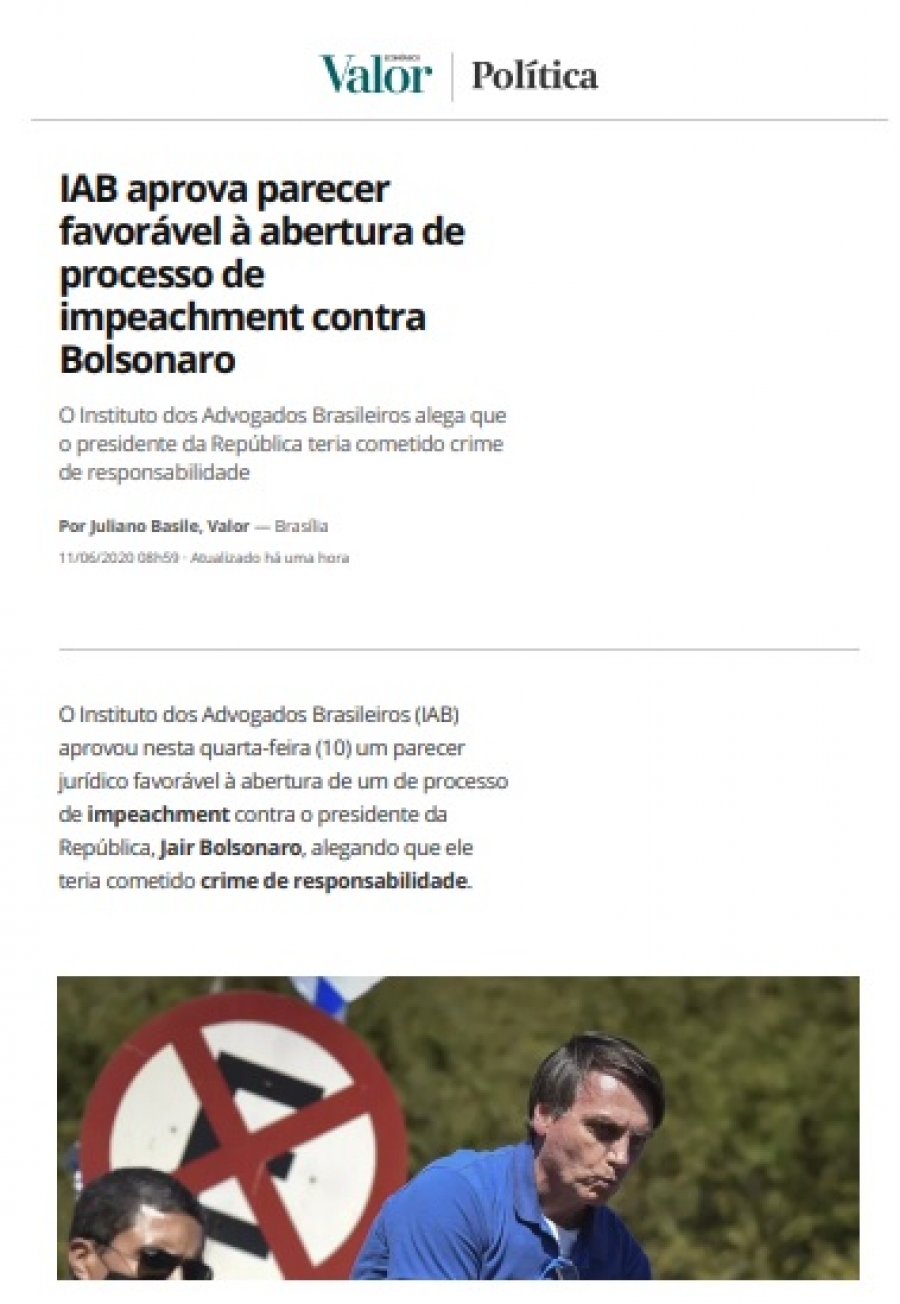 IAB aprova parecer favorável à abertura de processo de impeachment contra Bolsonaro