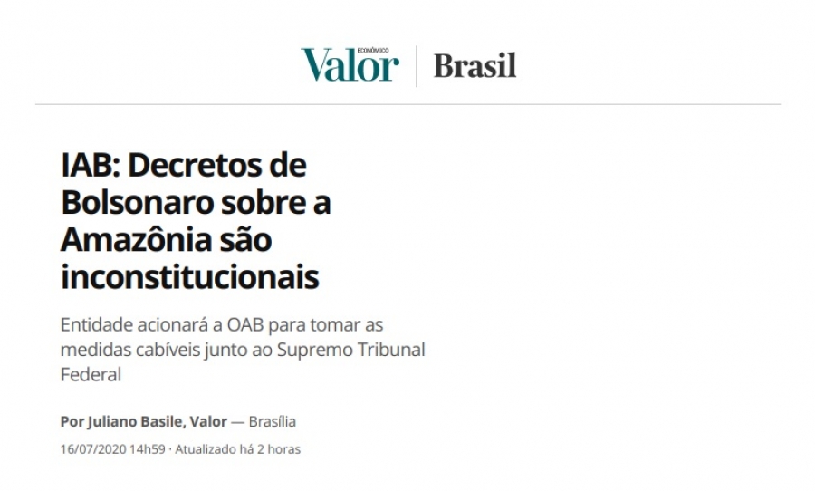 IAB: Decretos de Bolsonaro sobre a Amazônia são inconstitucionais