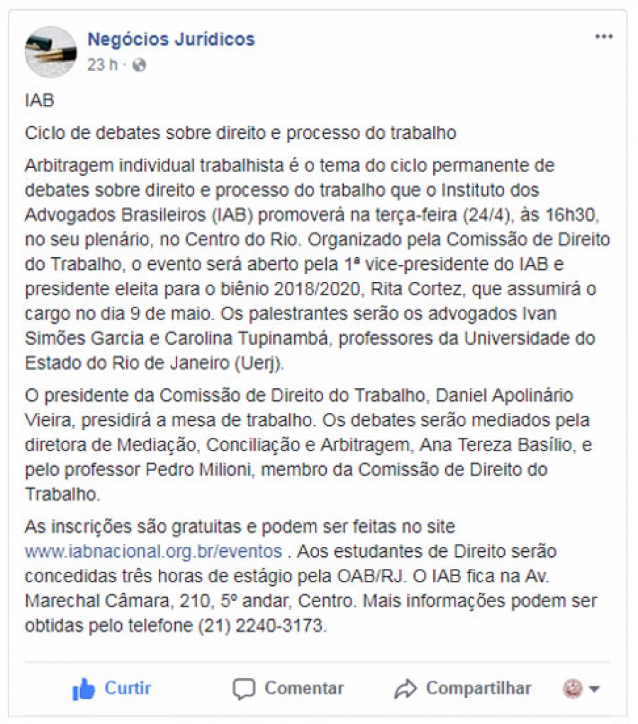 Negócios Jurídicos - 22/4/2018