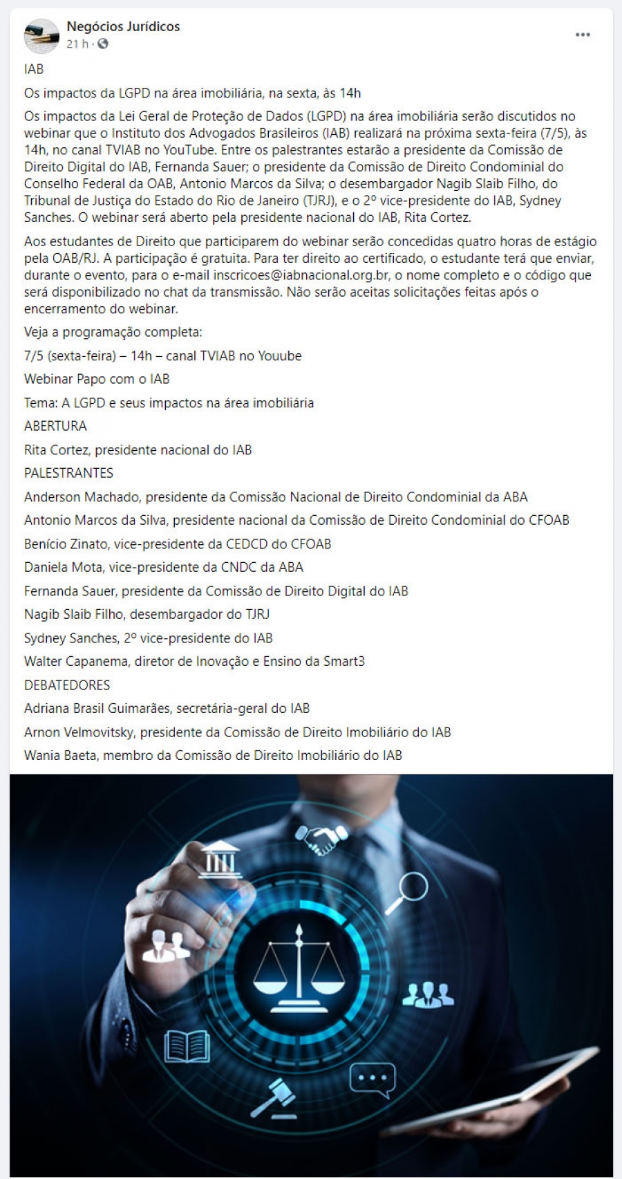 IAB promove debate sobre os impactos da LGPD na área imobiliária, na sexta, às 14h