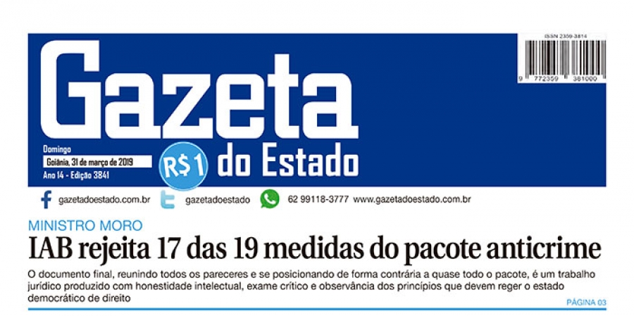 FONTE: Gazeta do Estado (GO) - 31/3/2019