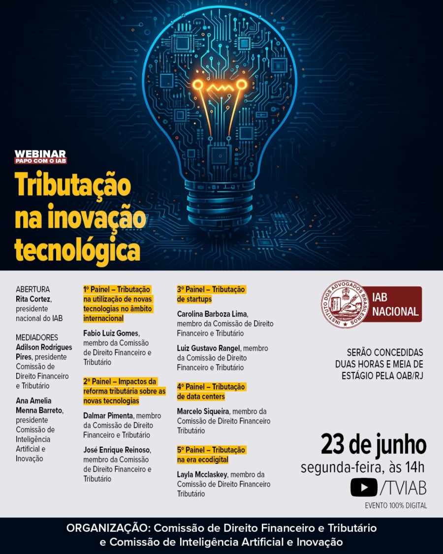 Organização: Comissão de Direito Financeiro e Tributário e Comissão de Inteligência Artificial e Inovação.