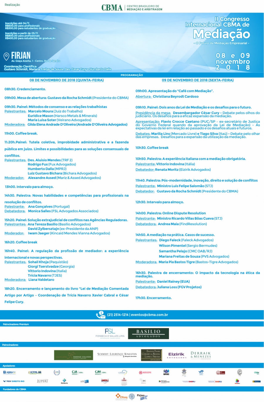 Dia, 08 e 09 de novembro de 2018 - LOCAL: FIRJAN - Av: Graça Aranha nº 1 - Centro, Rio de Janeiro. 20% de desconto aos Associados do IAB em dia com as suas obrigações associativas.