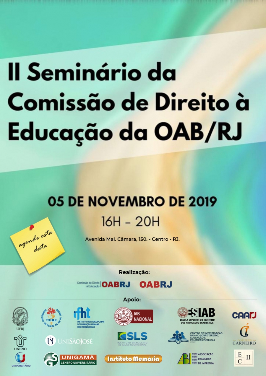 Dia 05 de novembro de 2019, das 16h às 20h, Local: OAB-RJ - Av. Marechal Câmara nº 150, Centro - Rio de Janeiro - RJ. (Clique e acesse o site)