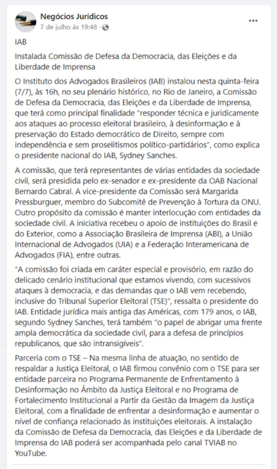 Instalada Comissão de Defesa da Democracia das Eleições e da Liberdade de Imprensa