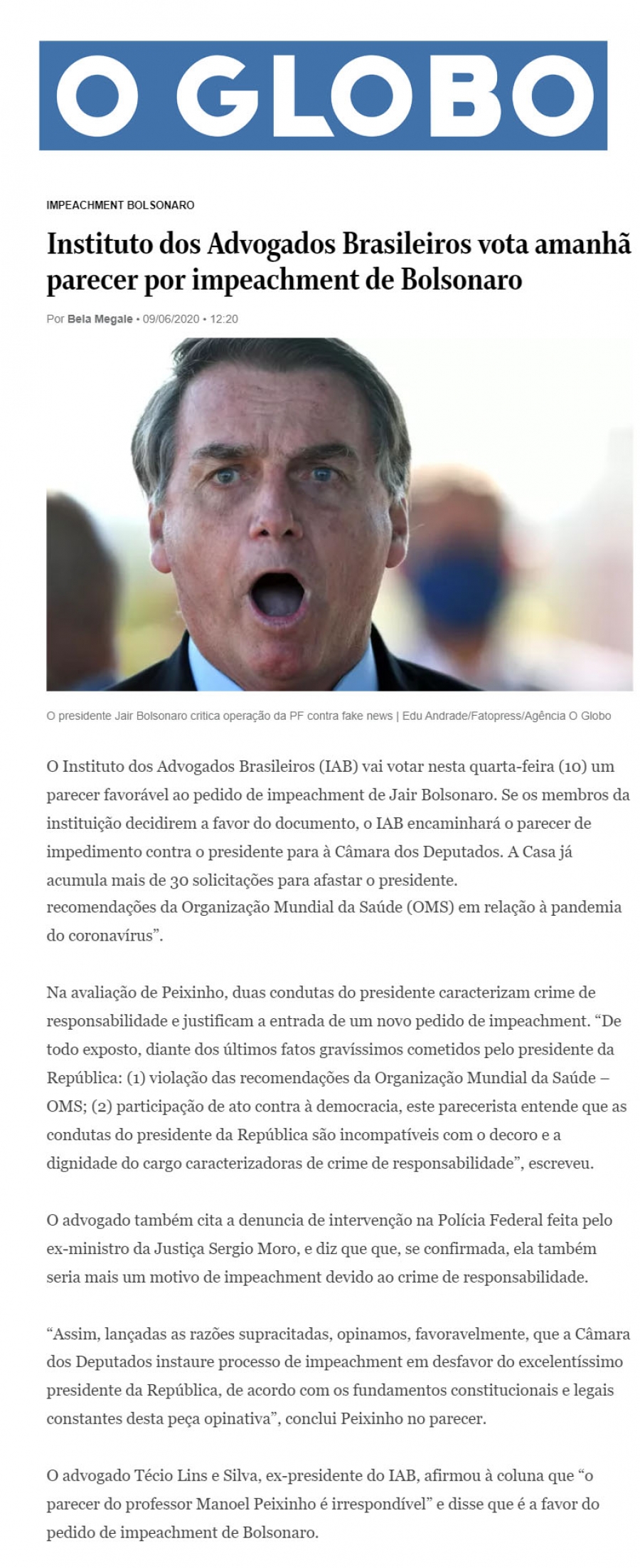 Instituto dos Advogados Brasileiros vota amanhã parecer por impeachment de Bolsonaro
