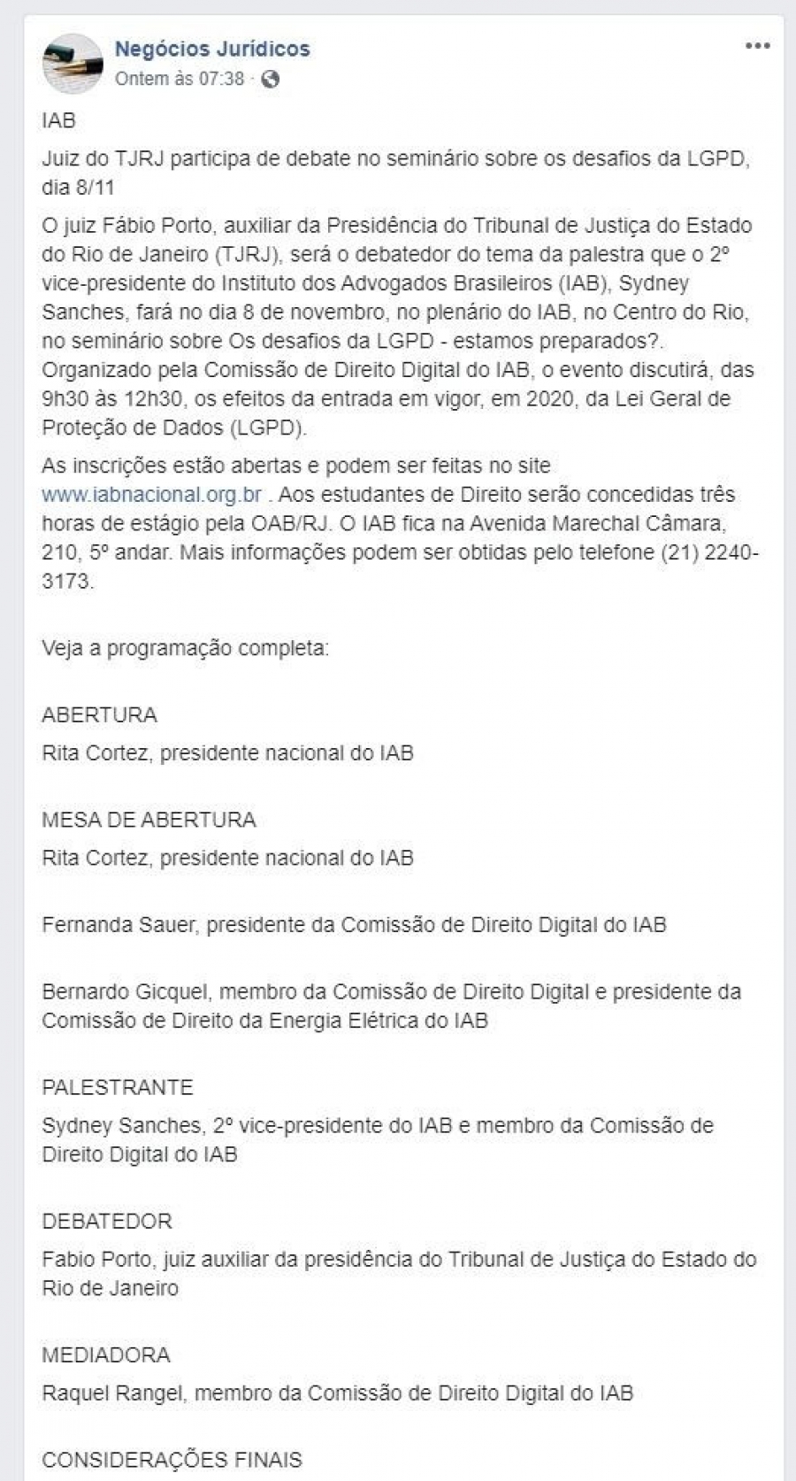 Juiz do TJRJ participa de debate no seminário sobre os desafios da LGPD