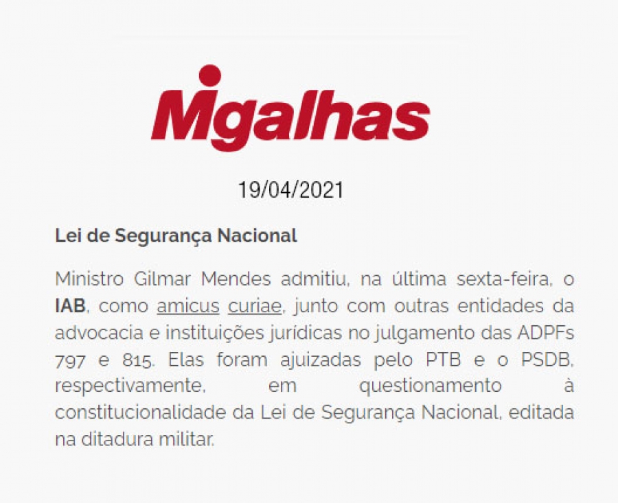 FONTE: Migalhas - 19/04/2021