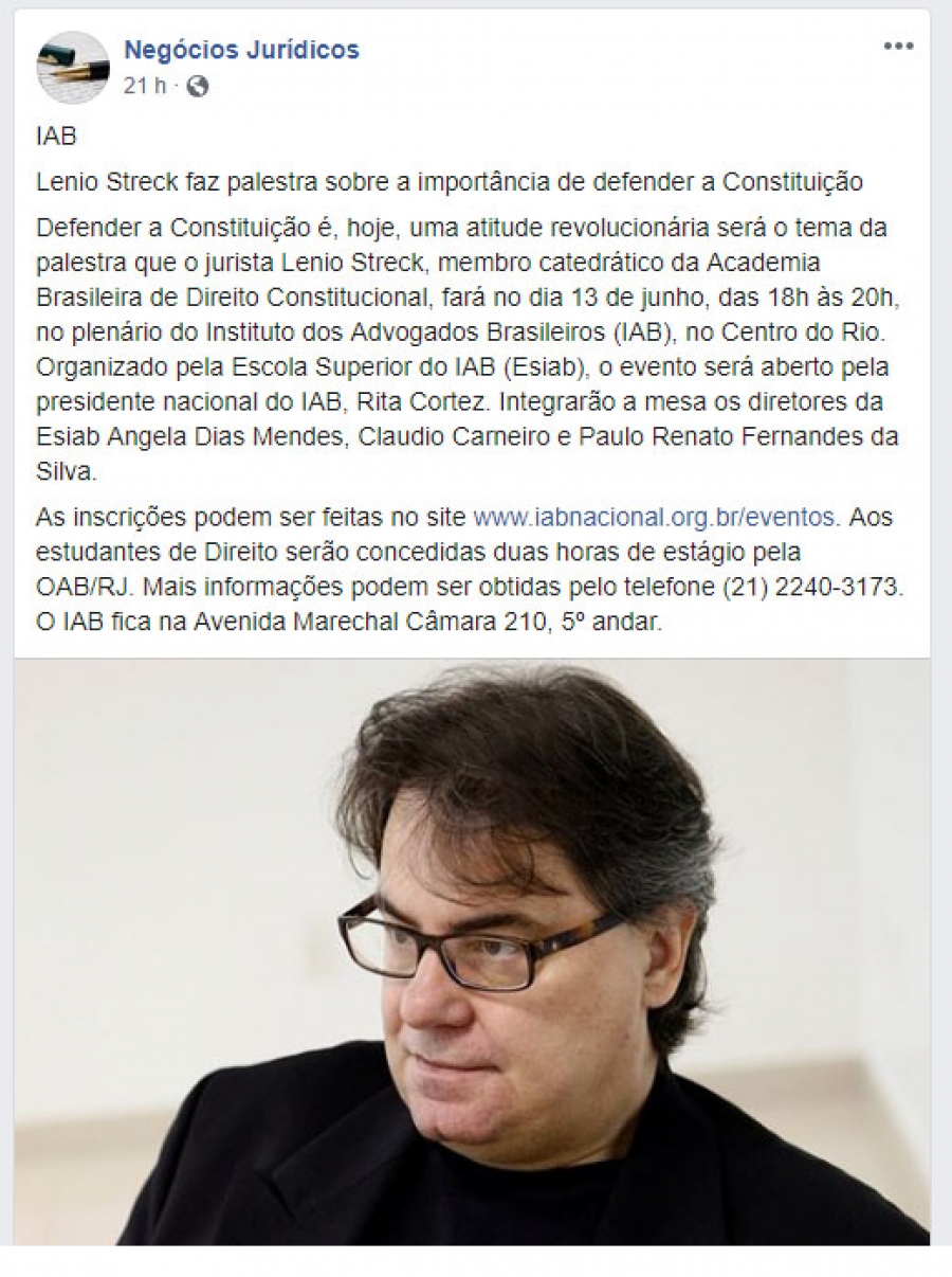 Lenio Streck faz palestra sobre a importância de defender a Constituição