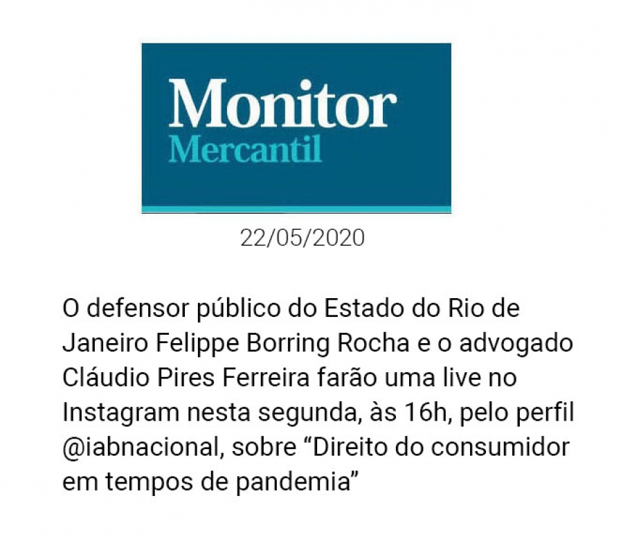 FONTE: Monitor Mercantil - 22/05/2020