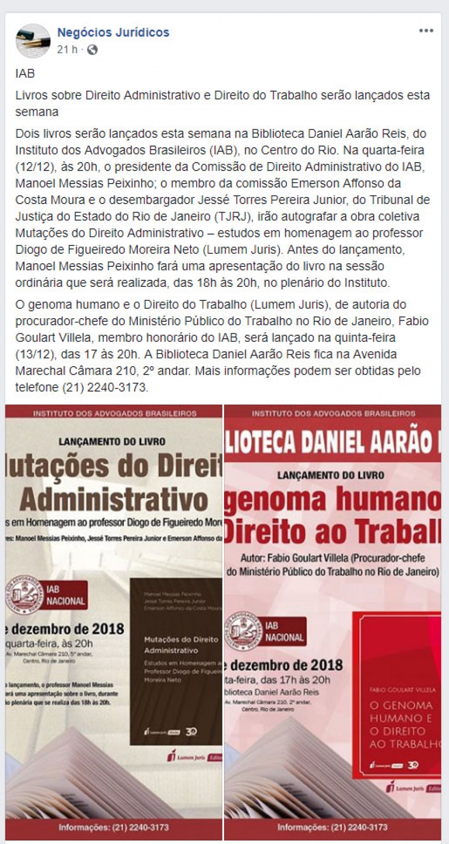 Livros sobre Direito Administrativo e Direito do Trabalho são lançados esta semana