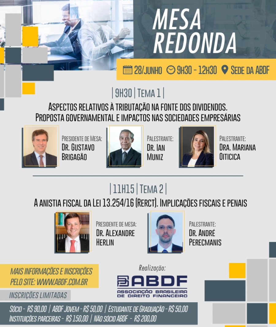 Dia 28 de junho de 2019, das 09h30 às 12h30 - Local: Sede da ABDF- Rua da Assembléia, 10 - Centro, Rio de Janeiro - RJ.