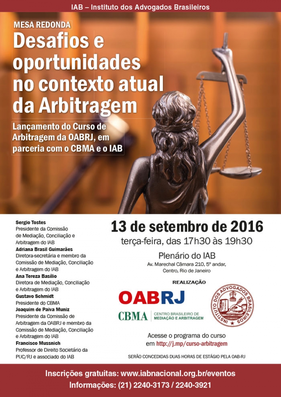 Dia 13/09/2016, das 17h30 às 19h30 - Local: Plenário do IAB