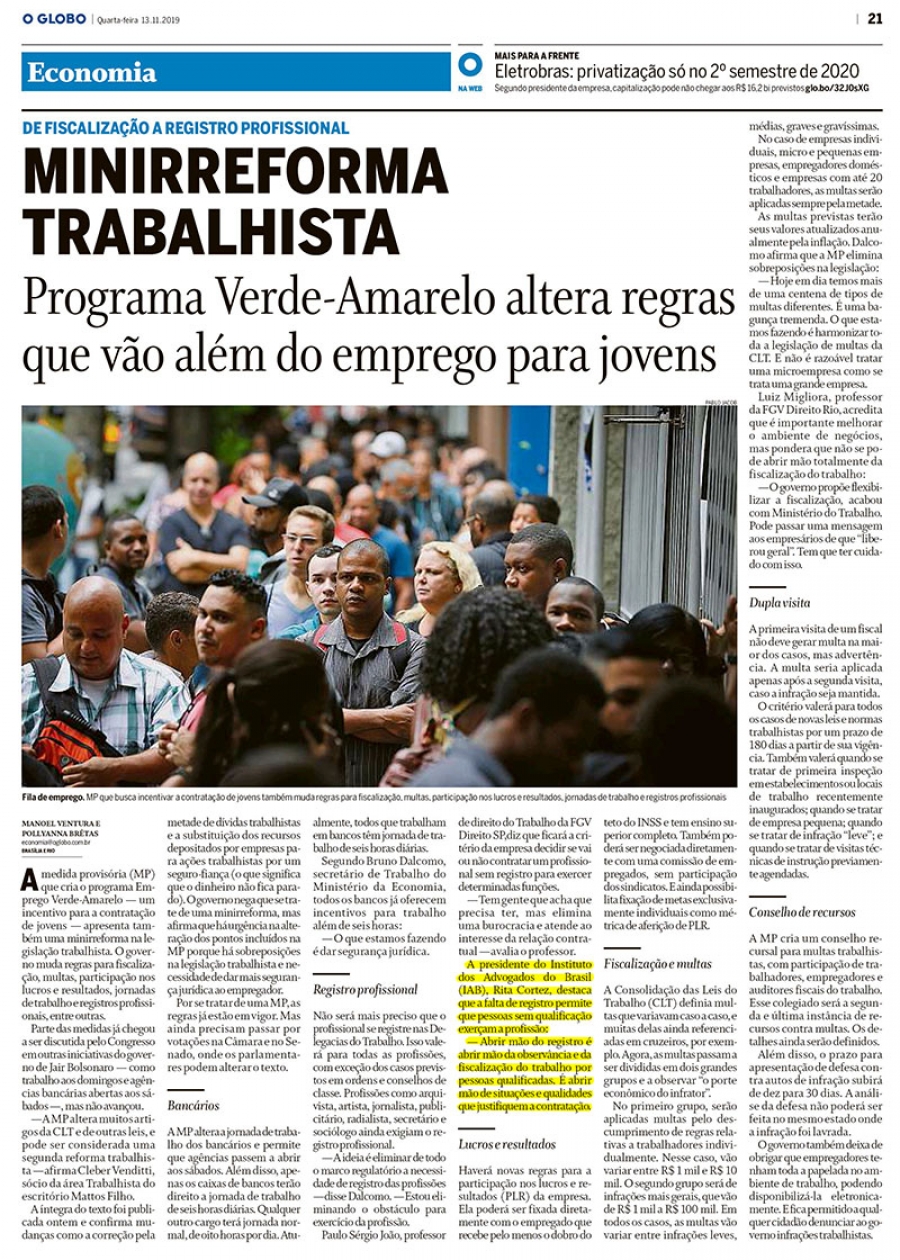 FONTE: O Globo Extra - 13/11/2019