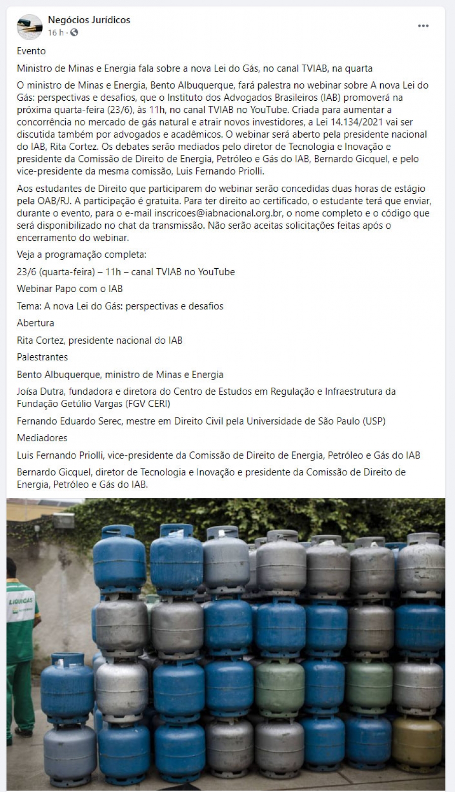 Ministro de Minas e Energia fala sobre a nova Lei do Gás, no canal TVIAB, na quarta