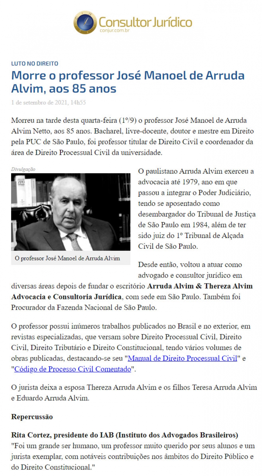 Morre o professor José Manoel de Arruda Alvim, aos 85 anos
