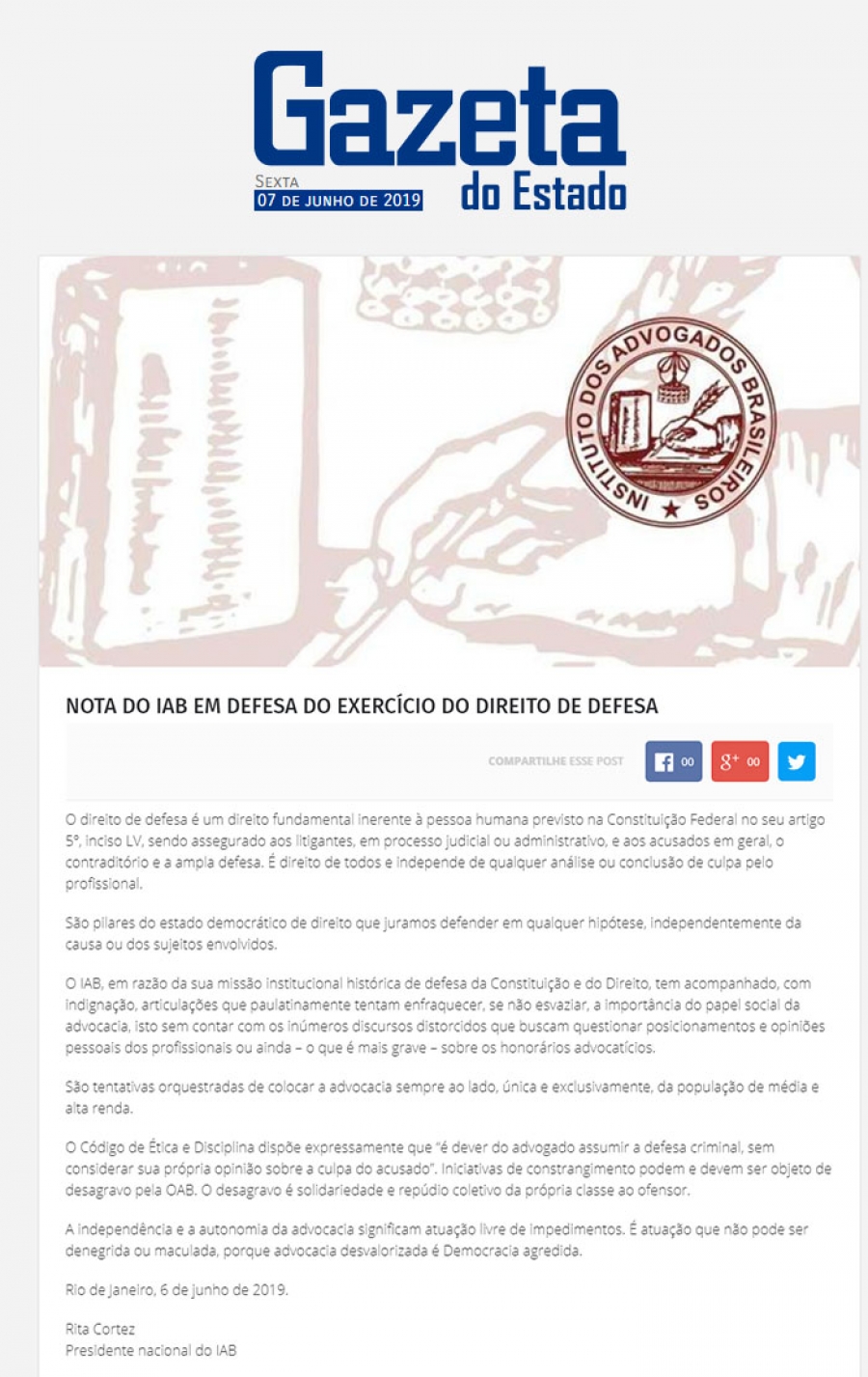 OS MEMBROS DO IAB ATUAM EM DEFESA DO ESTADO DEMOCRÁTICO DE DIREITO. FILIE-SE!