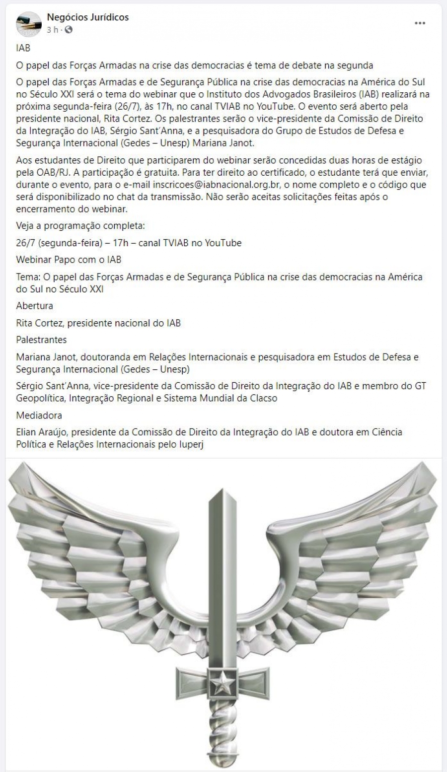 O papel das Forças Armadas na crise das democracias é tema de debate no IAB, na segunda