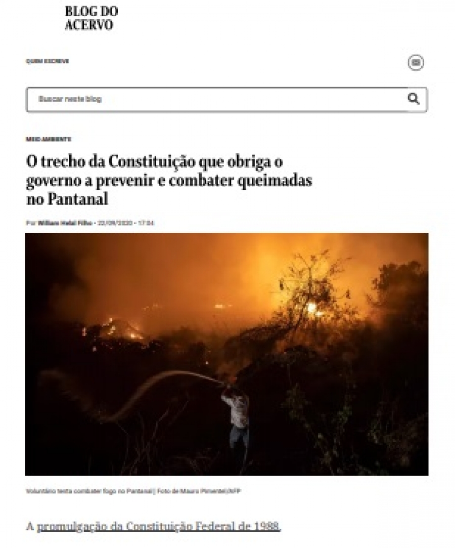 O trecho da Constituição que obriga o governo a prevenir e combater queimadas no Pantanal