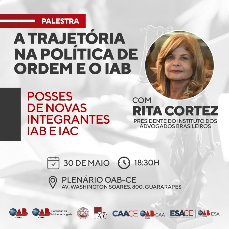 Dia 30 de maio de 2019, às 18h30 - Local: Plenário da OAB - CE - Av. Washington Soares, nº 800, Guararapes.