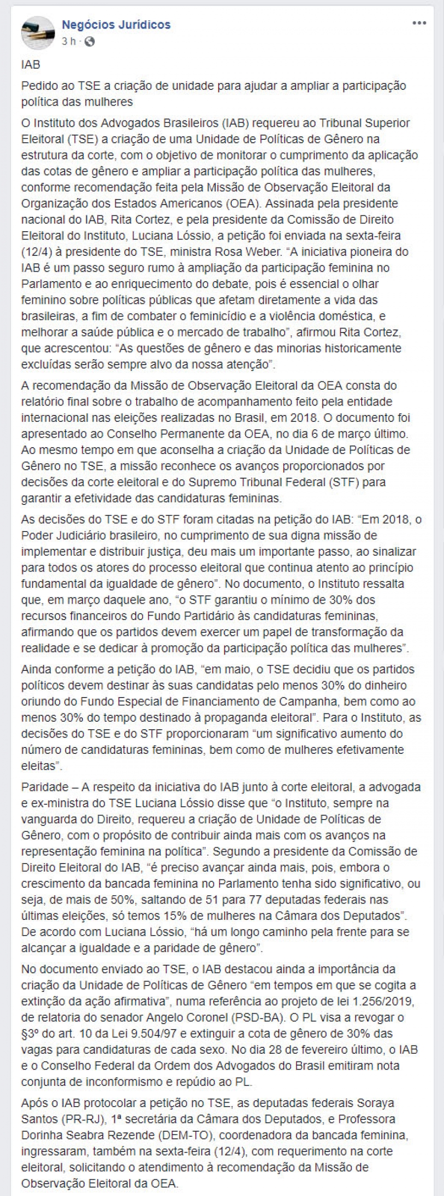 FONTE: Negócios Jurídicos - 15/4/2019