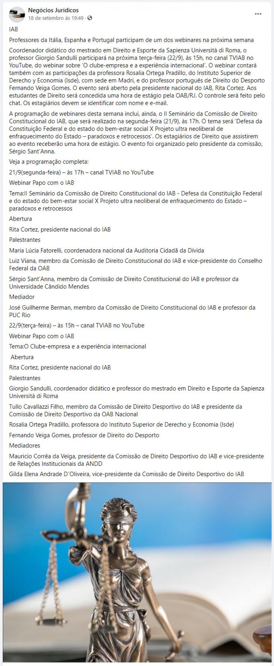 Professores da Itália, Espanha e Portugal participam de um dos webinares do IAB na próxima semana