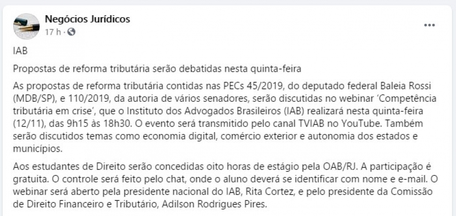 FONTE: Negócios Jurídicos - 11/11/2020