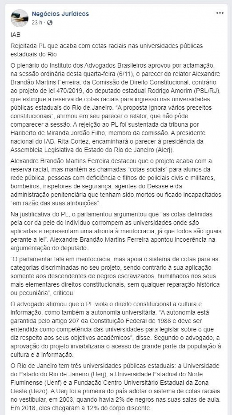 Rejeitado PL que acaba com cotas raciais nas universidades públicas estaduais do Rio